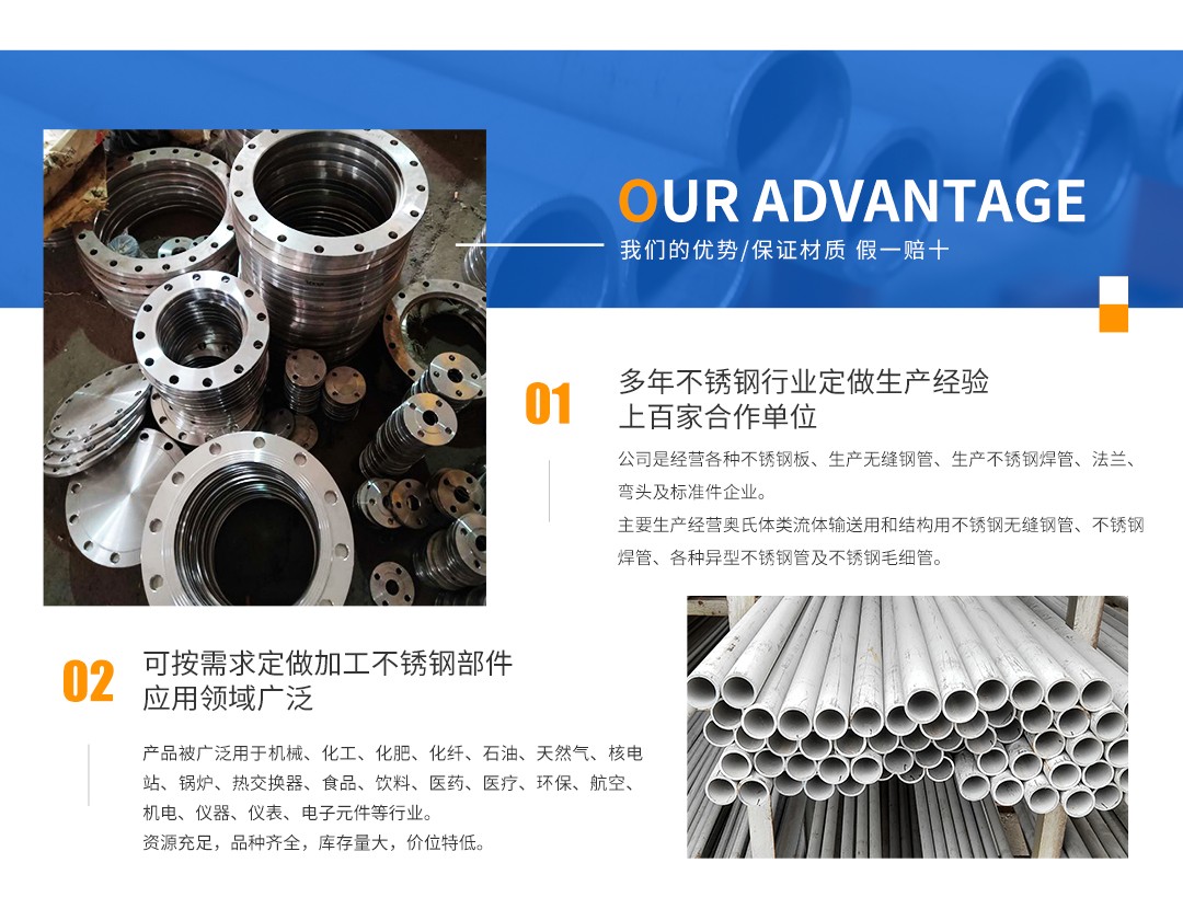 本公司经营不锈钢板、各种不锈钢配件为主的专业公司,是经营销售太钢、酒钢、宝钢、张浦、东方特钢。资源充足,品种齐全,库存量大,价位特低。同时,我公司经营各种不锈钢法兰、弯头、截止阀、球阀、带丝管件、标准件等。